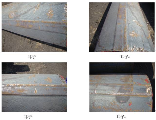 缺陷特征:在鋼材表面上,與孔型開口處相對(duì)應(yīng)的地方,出現(xiàn)順軋制方向的凸起稱為耳子,有的是單邊的,有的是雙邊的,有的貫穿鋼材全長,有的局部的。耳子一般底寬頂窄,凸起寬度大而高度小。